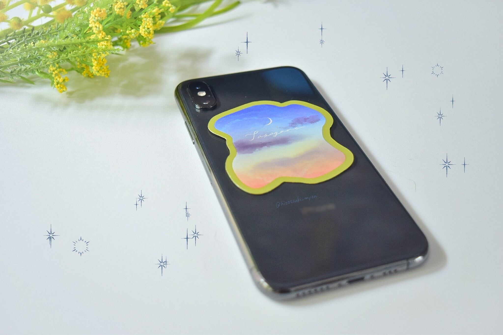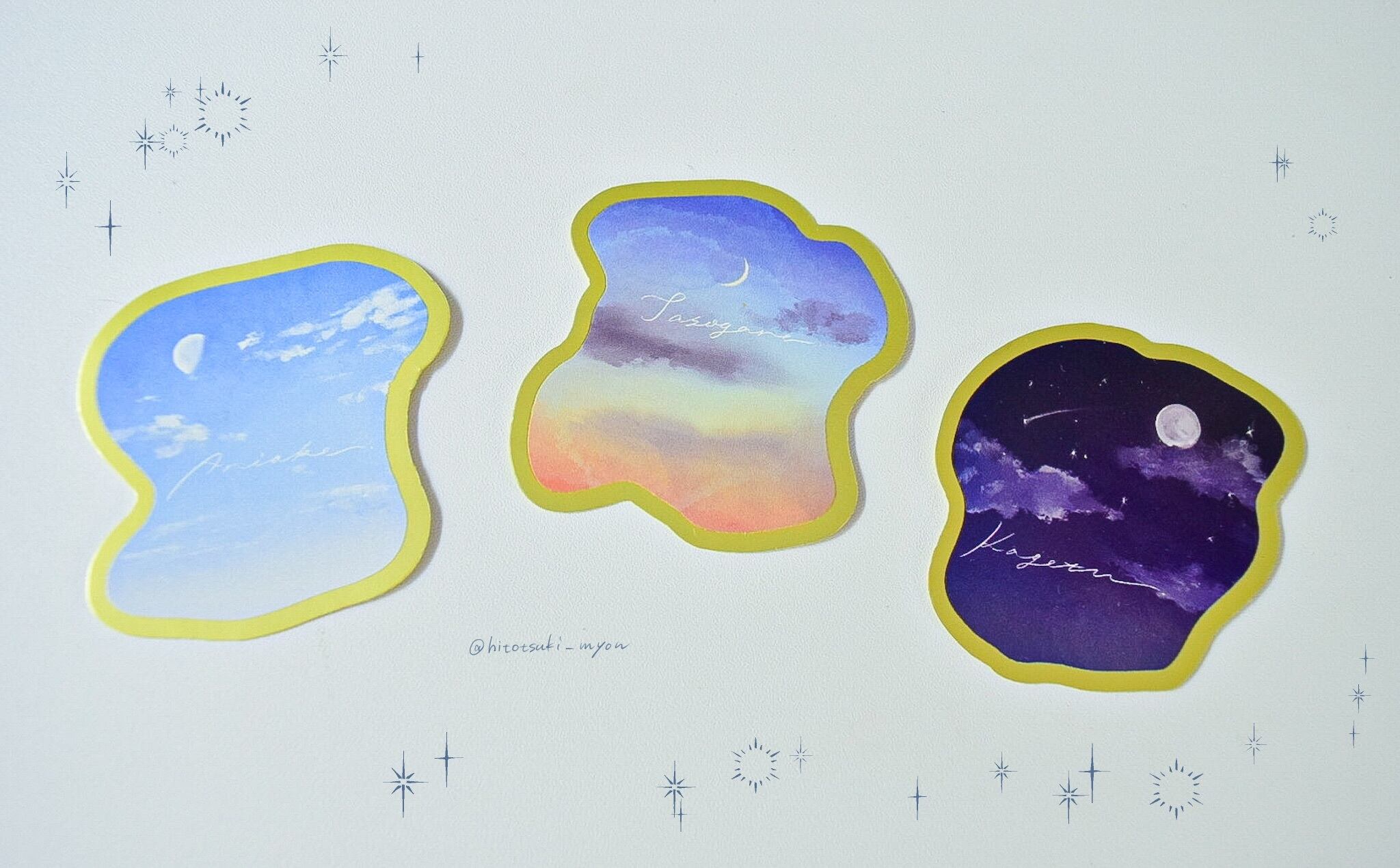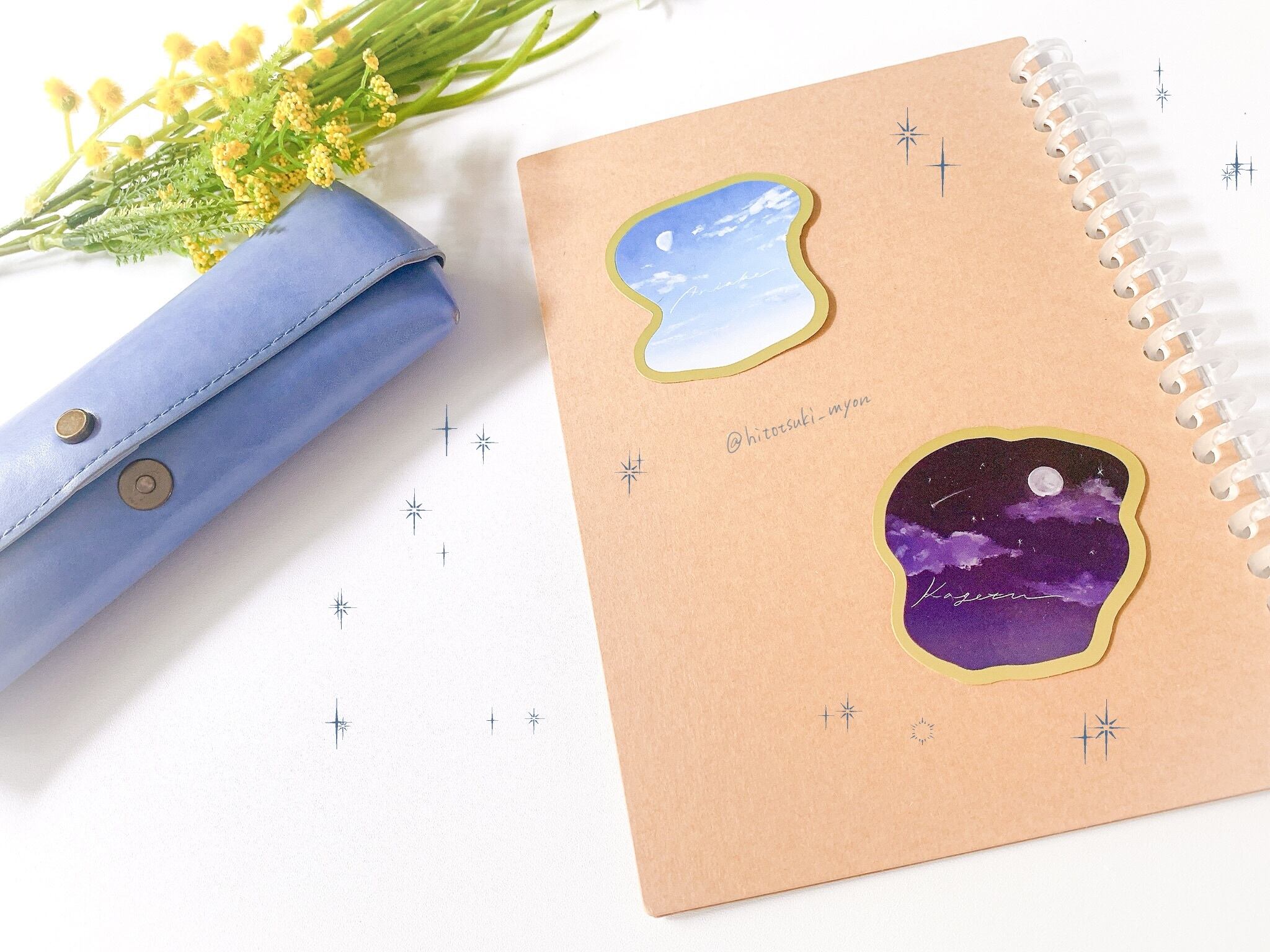 不思議なかたちをした空と月のイラストステッカー3種類です☾·̩͙.