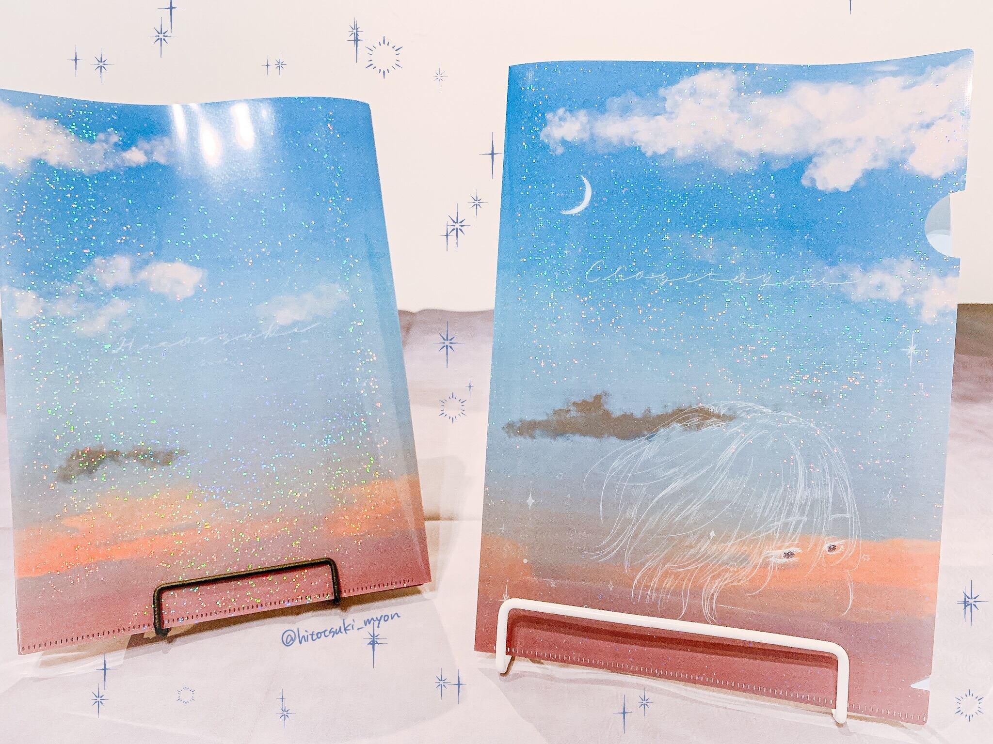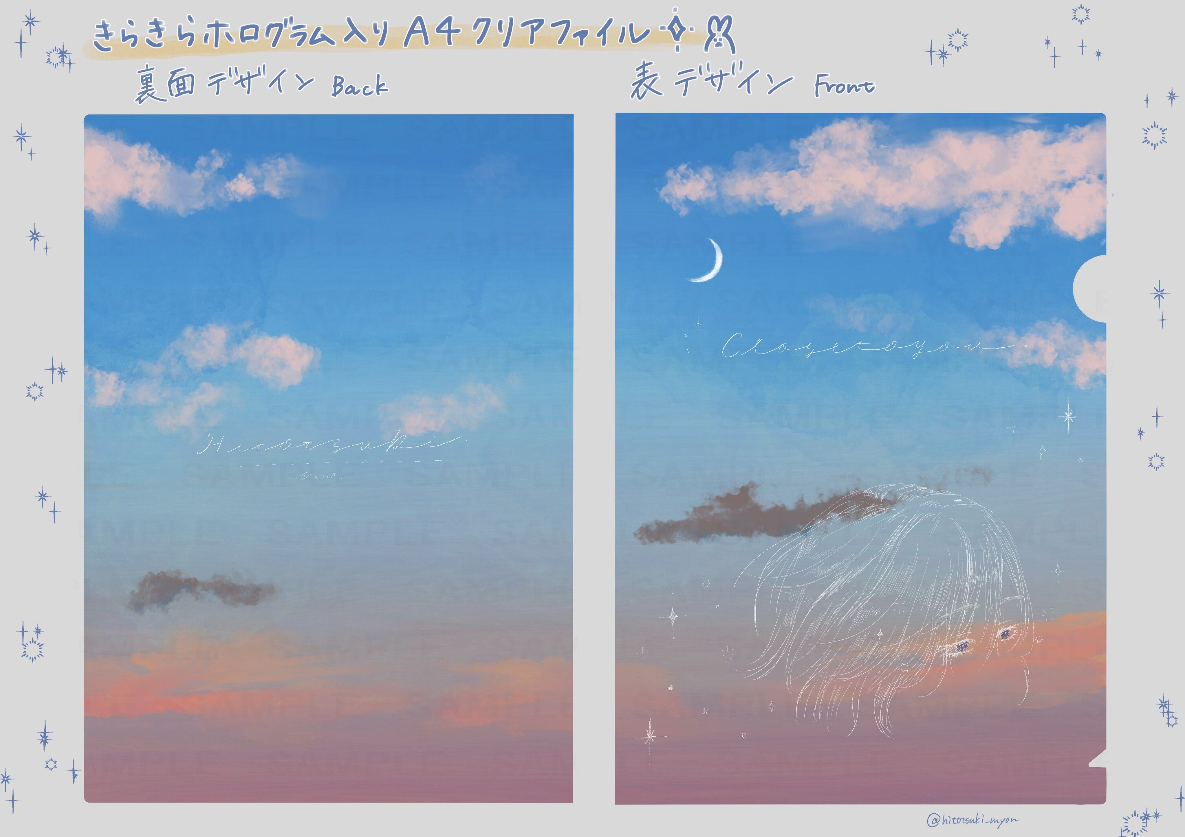 全て手描きの空とイラストがプリントされたエモエモな絵柄のクリアファイルです☾·̩͙.